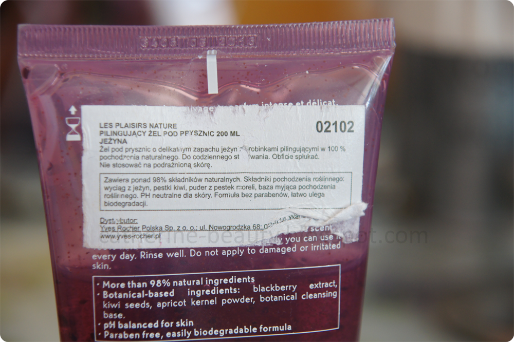 To miękka tuba stojąca na nakrętce. Nie ma problemu z wydostaniem peelingu jednak drobinki potrafią osiadać na ścianach butelki. Grafika smakowitych jeżyn i kolor opakowania peelingu jak najbardziej do mnie przemawia.